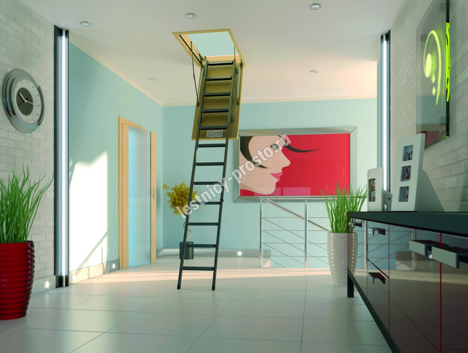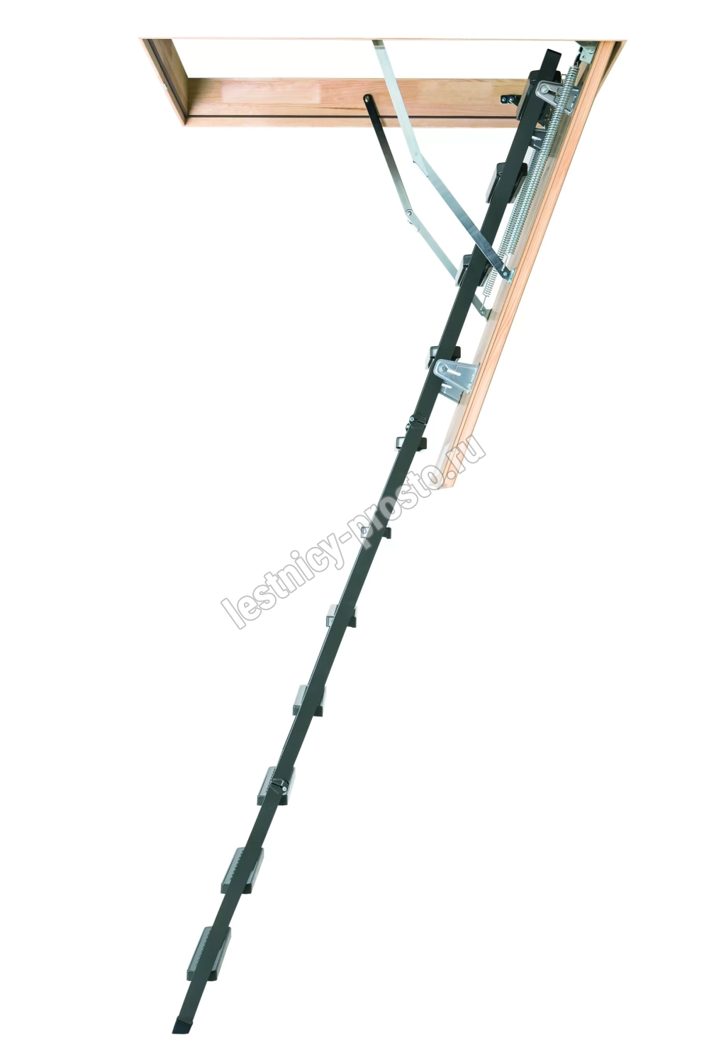 Чердачная металлическая лестница LMS – это надежная складная конструкция, состоящая из марша и термоизоляционной крышки, изготовленной из ДВП и окрашенной в бежевый цвет. Герметичность всей конструкции достигается благодаря утеплению крышки люка и контурному уплотнению по периметру, что предотвращает возможные теплопотери. Чердачную лестницу очень легко разложить и сложить благодаря наличию специального стержня с четырехугольной насадкой.