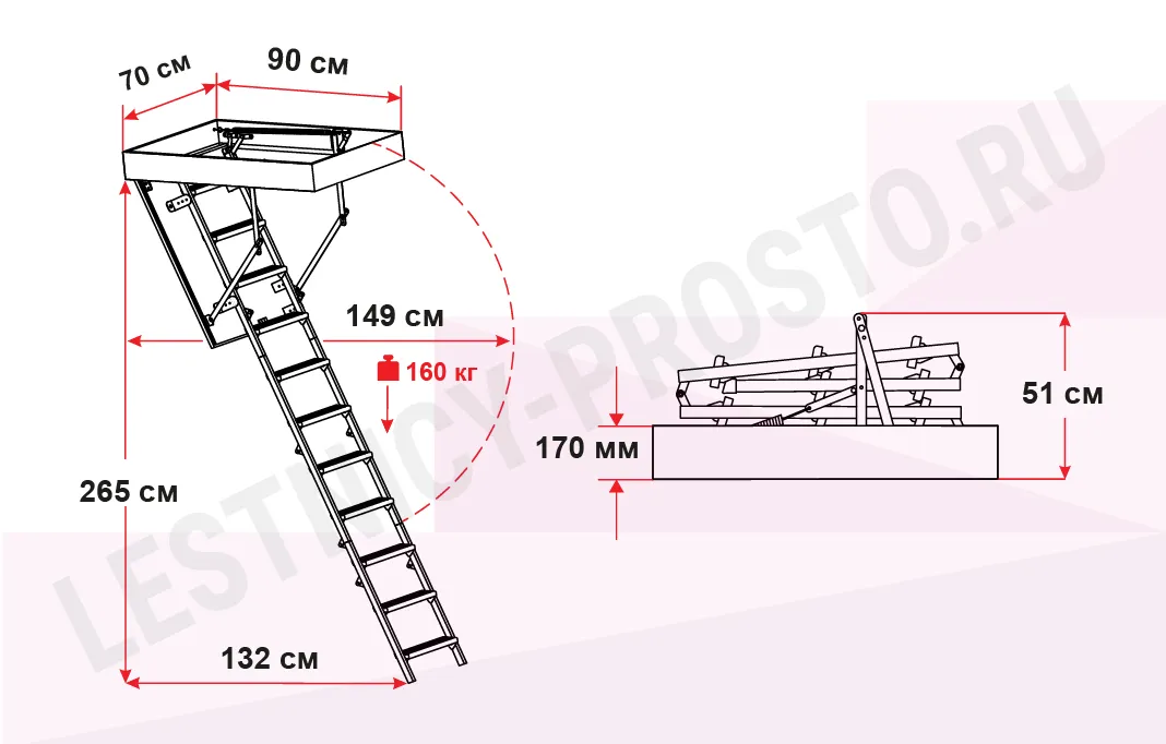 Чердачная лестница OMAN MINI POLAR 70×90 см, h-265 см