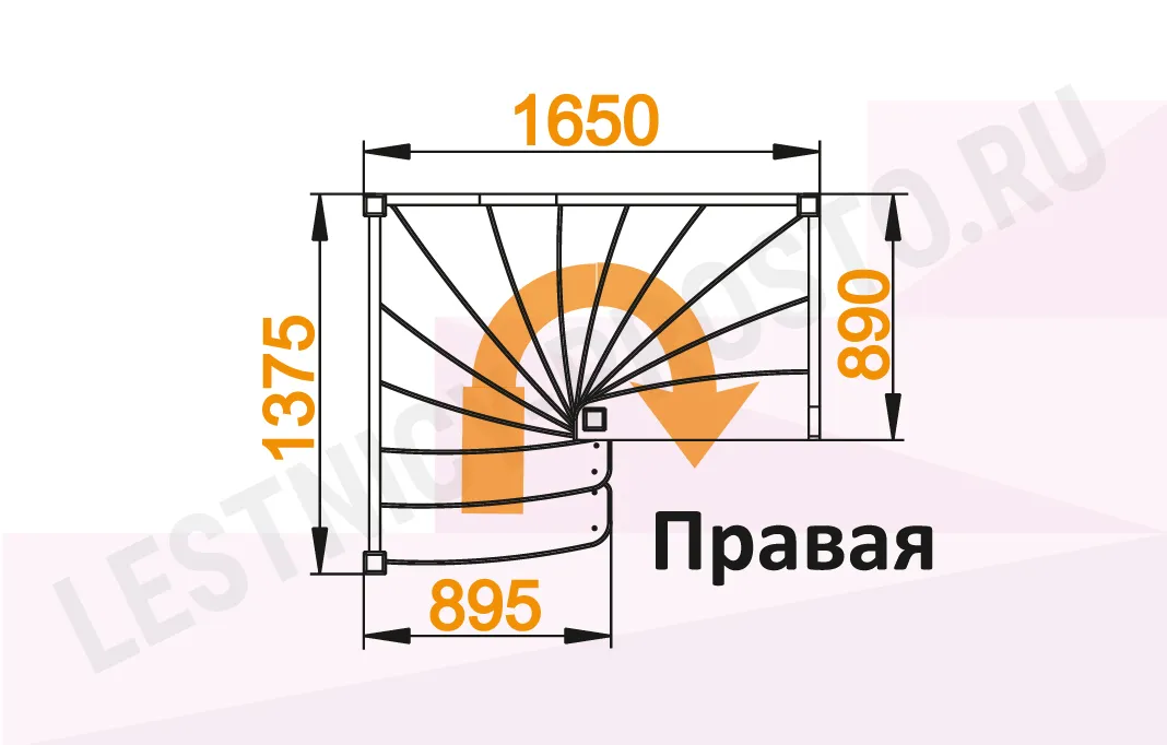Схема лестницы ЛС-04М с поворотом направо