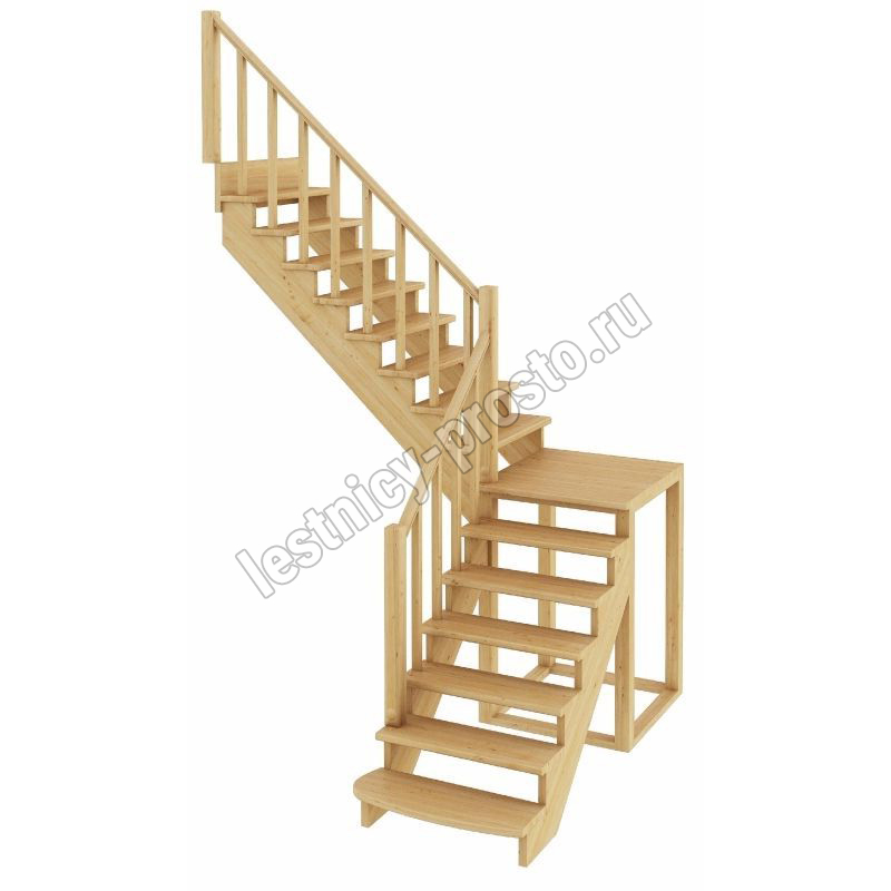 Базовый комплект включает в себя деревянные элементы лестницы и ограждения без какого-либо покрытия.