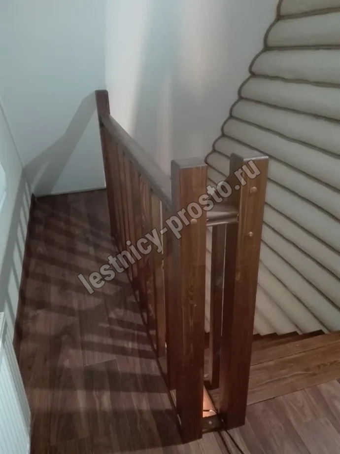 Базовый комплект включает в себя деревянные элементы лестницы с подступёнками и ограждение без какого-либо покрытия.