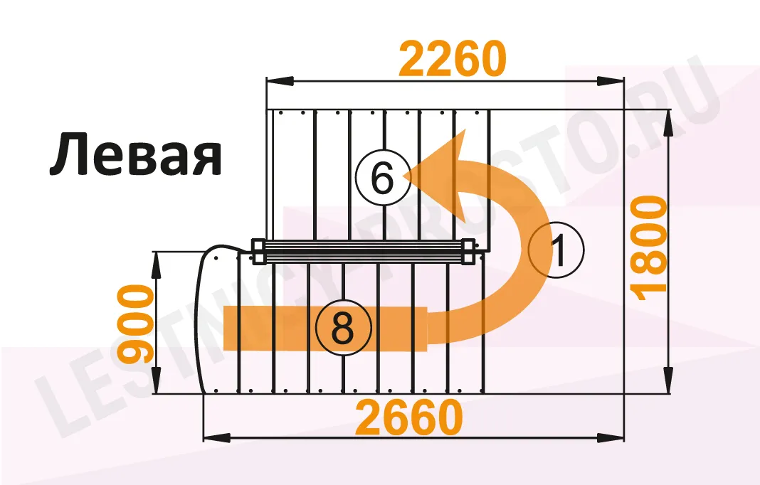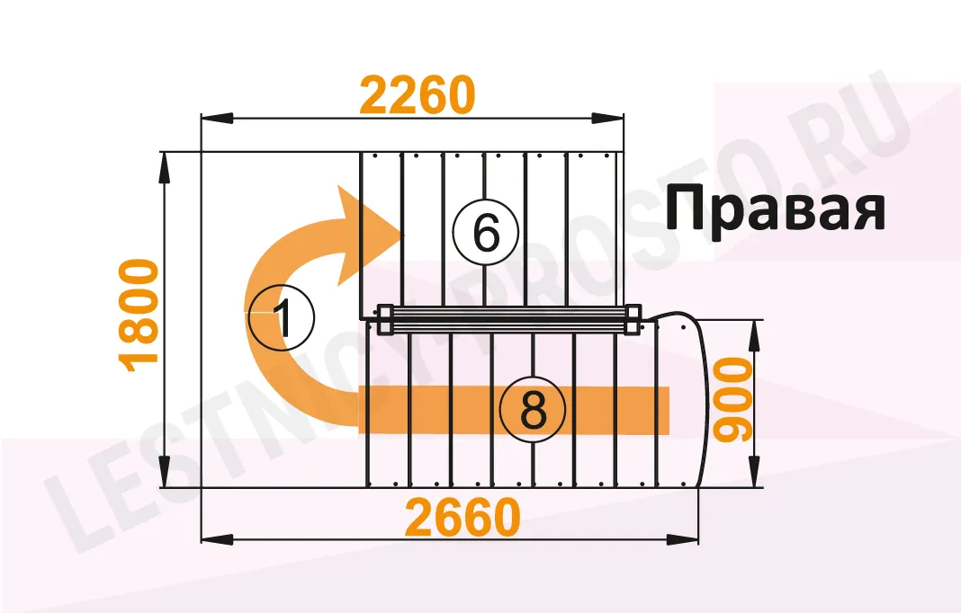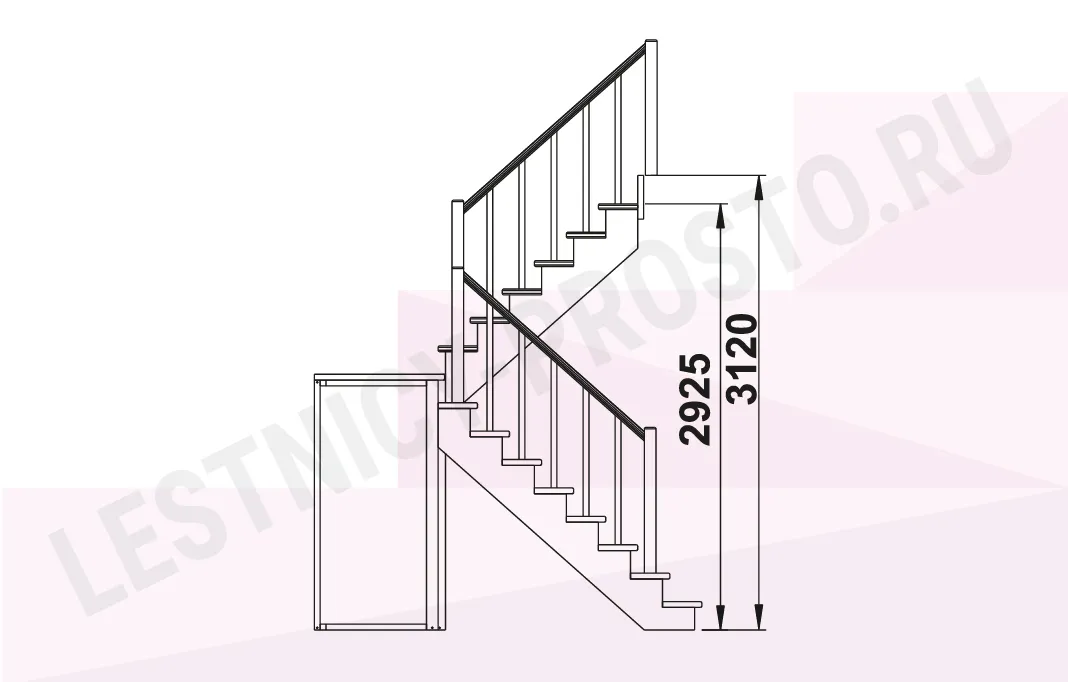 Базовый комплект включает в себя деревянные элементы лестницы с подступёнками и ограждения без какого-либо покрытия. Стандартное ограждение можно заменить любым на ваш вкус (стоимость может измениться).