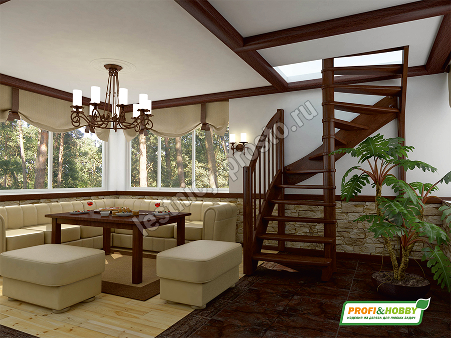 В производстве лестницы ЛС-04м под покраску используется сосна с небольшими изменениями цвета, что практически не влияет на ее механические свойства и почти незаметно при покраске в темные цвета. Базовый комплект включает в себя деревянные элементы лестницы и ограждения без какого-либо покрытия.