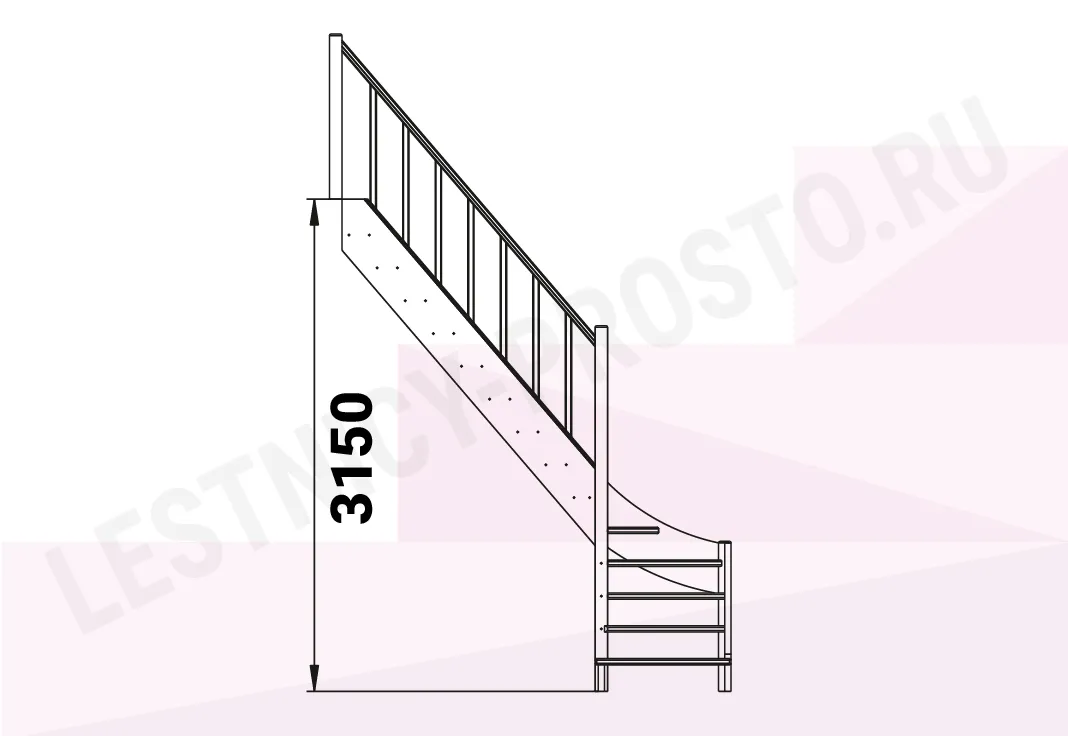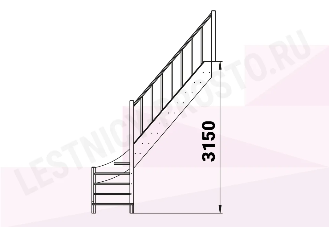Лестница из сосны ЛС-07М/2 с подступёнками под покраску