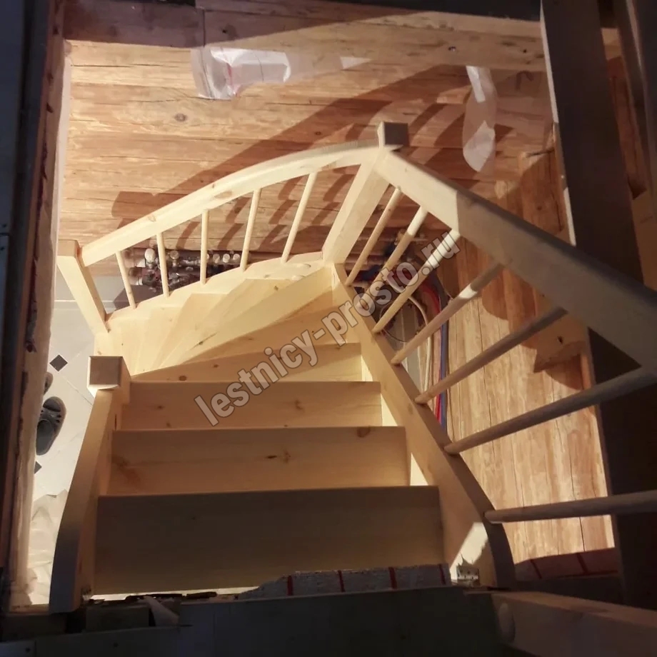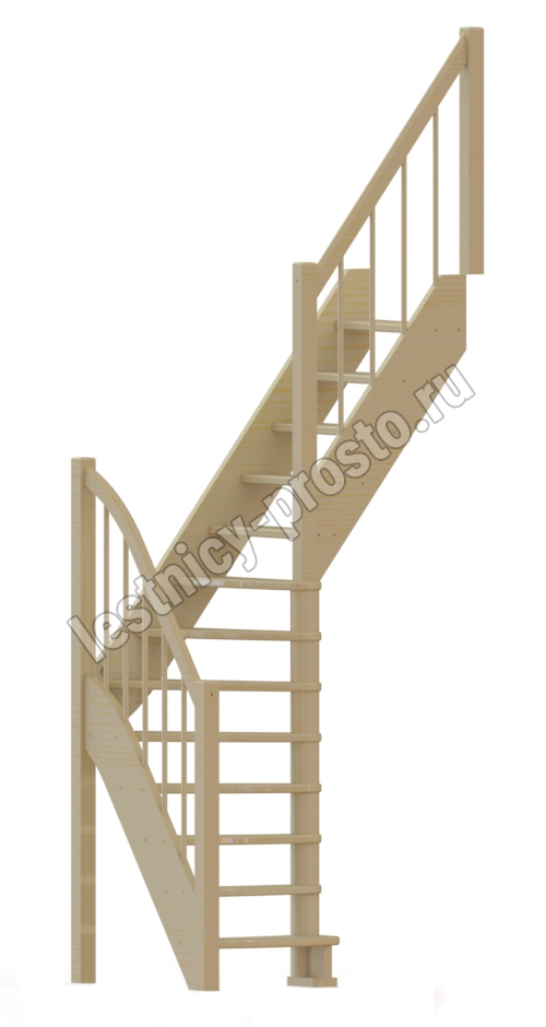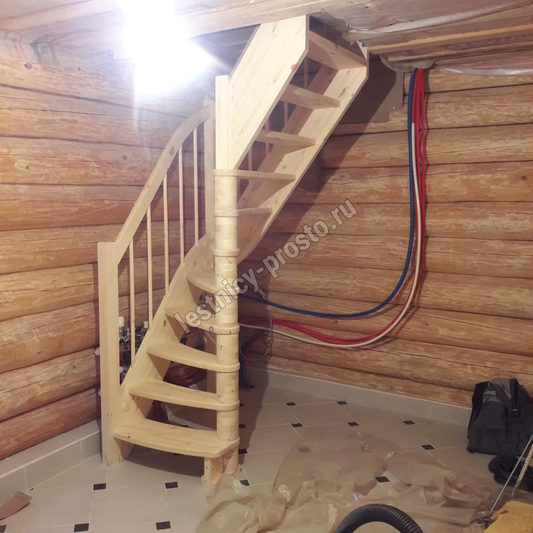 Базовый комплект включает в себя деревянные элементы лестницы и ограждения без какого-либо покрытия.