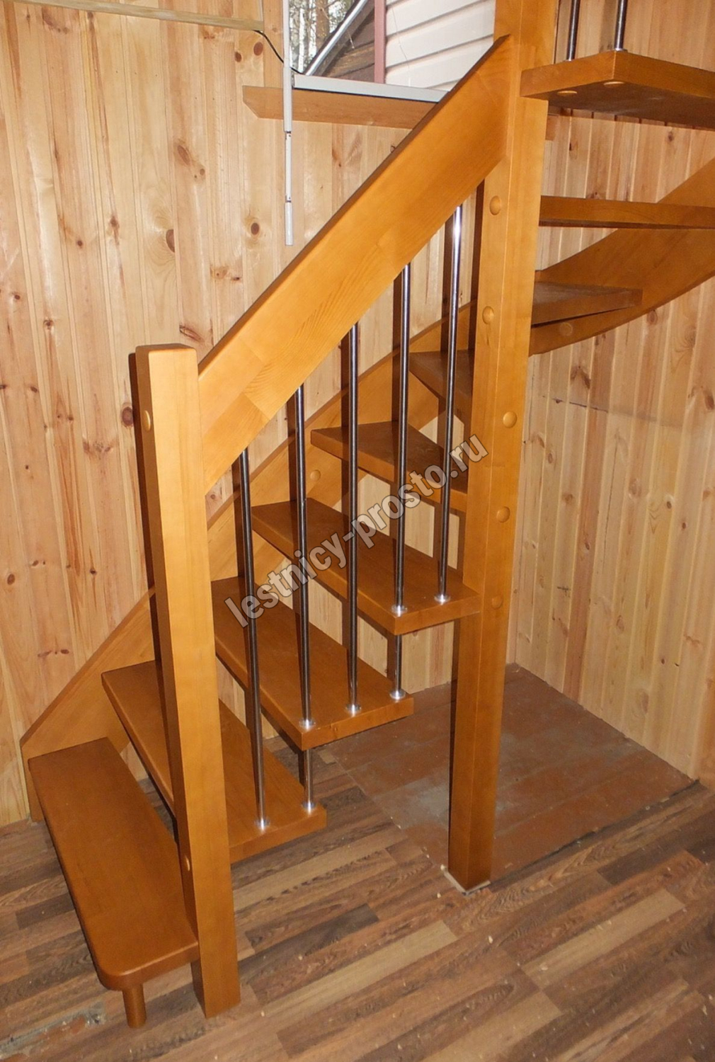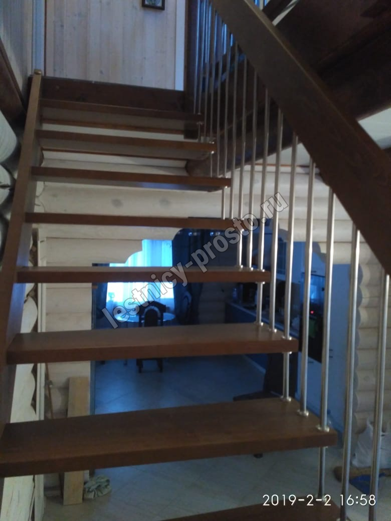 возможна комбинированная лестница: из сосны (ступени бук, ясень, дуб);