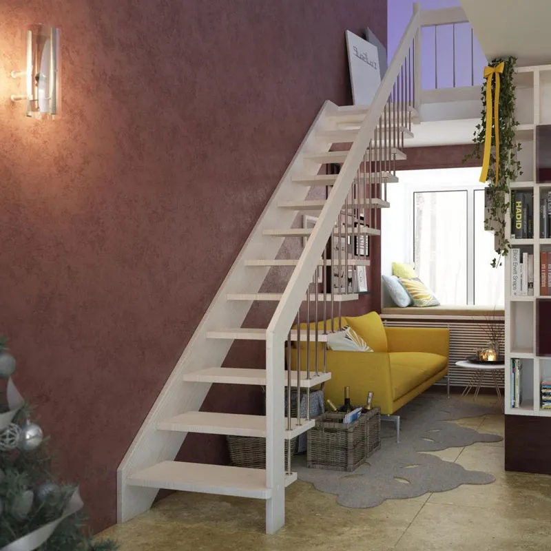 возможна комбинированная лестница: из сосны (ступени бук, ясень, дуб);