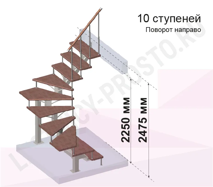 Высота лестницы 2250 - 2475 (10 ступеней) мм