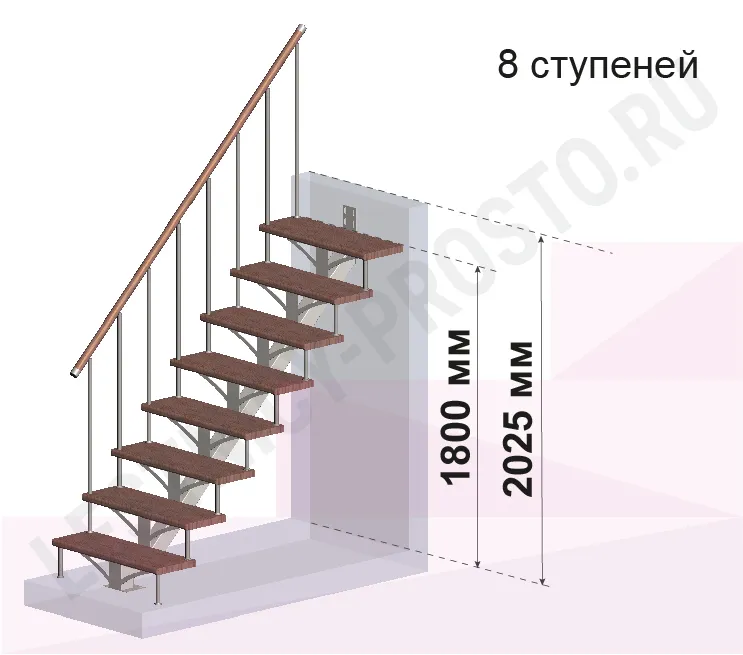 Высота лестницы 1800 - 2025 мм