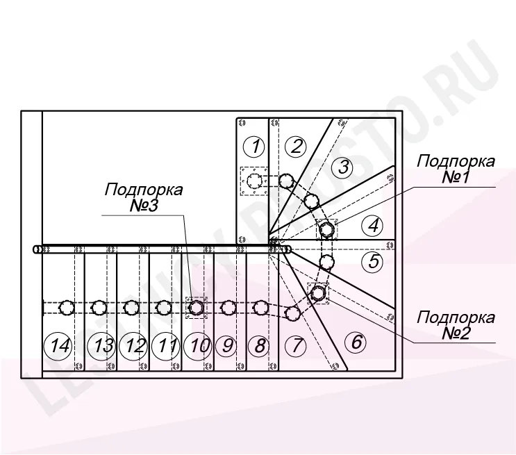 Схема и расчет указаны для шага 225 мм - мы рекомендуем эту высоту шага, как оптимальную для комфортного подъёма и экономии бюджета.