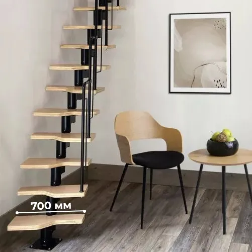 Лестница Prosto Urban Black гусиный шаг 700 мм, h198-288 см (11 ступеней), берёза мультиплекс