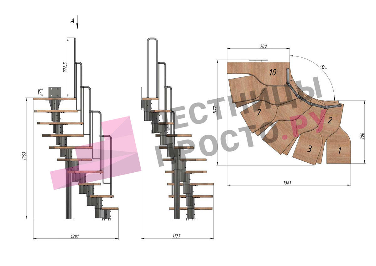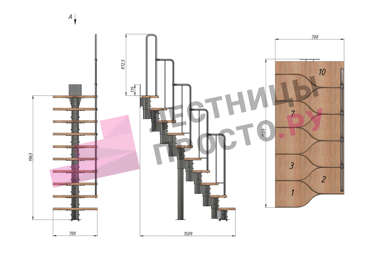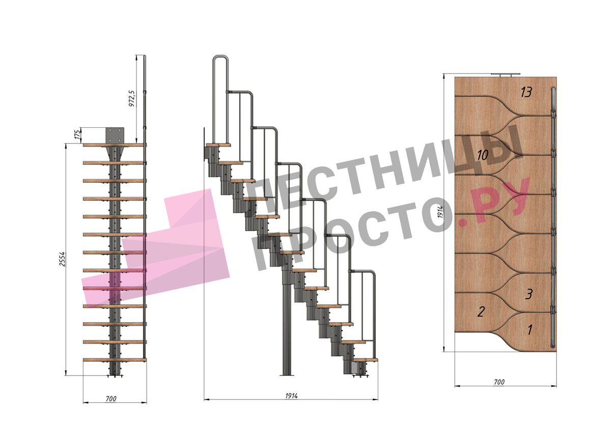 Лестница Prosto Urban Black гусиный шаг 700 мм/Ступени из берёзы мультиплекс