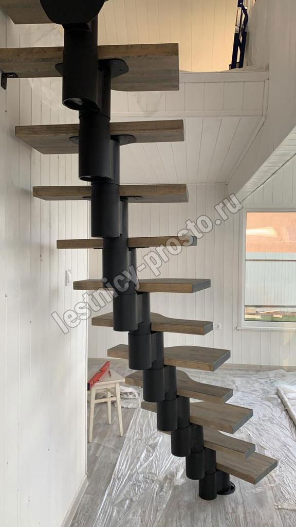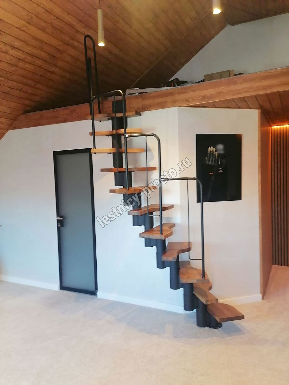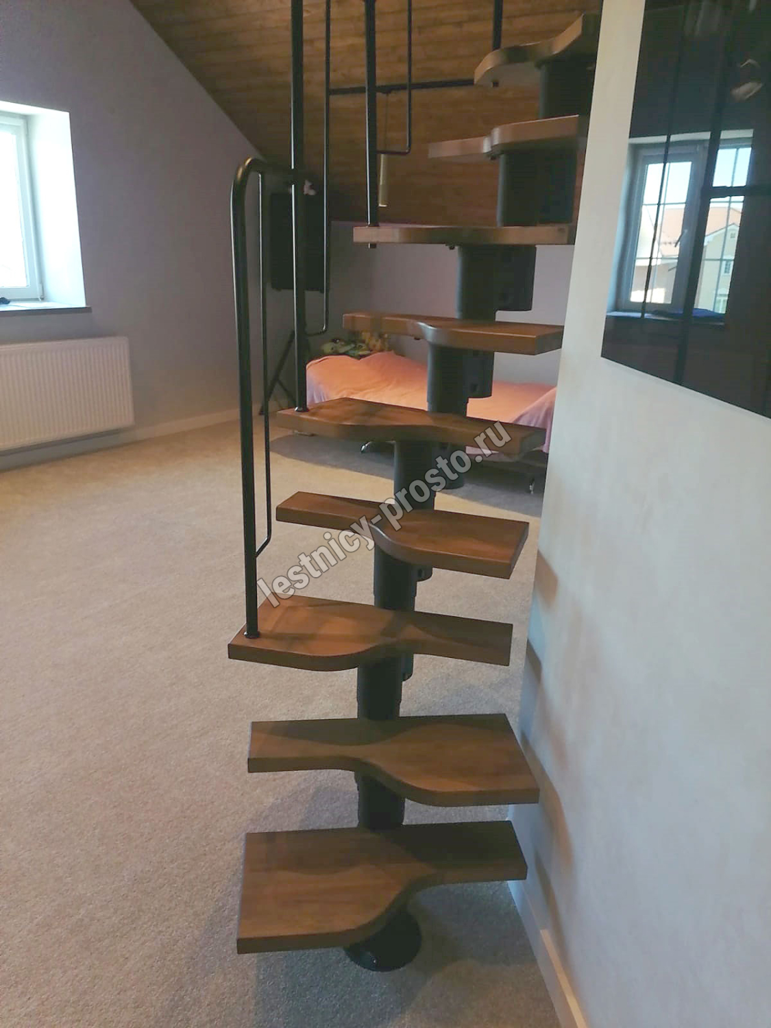 Лестница Prosto Urban Black гусиный шаг 600 мм, h198-288 см (11 ступеней), ясень