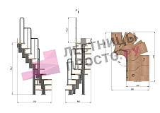 | Лестница Prosto Urban Black гусиный шаг 600 мм, h180-264 см (10 ступеней), бук |