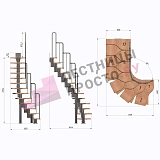 | Лестница Prosto Urban Grey г-образная гусиный шаг 600 мм, h198-288 см (11 ступеней) |