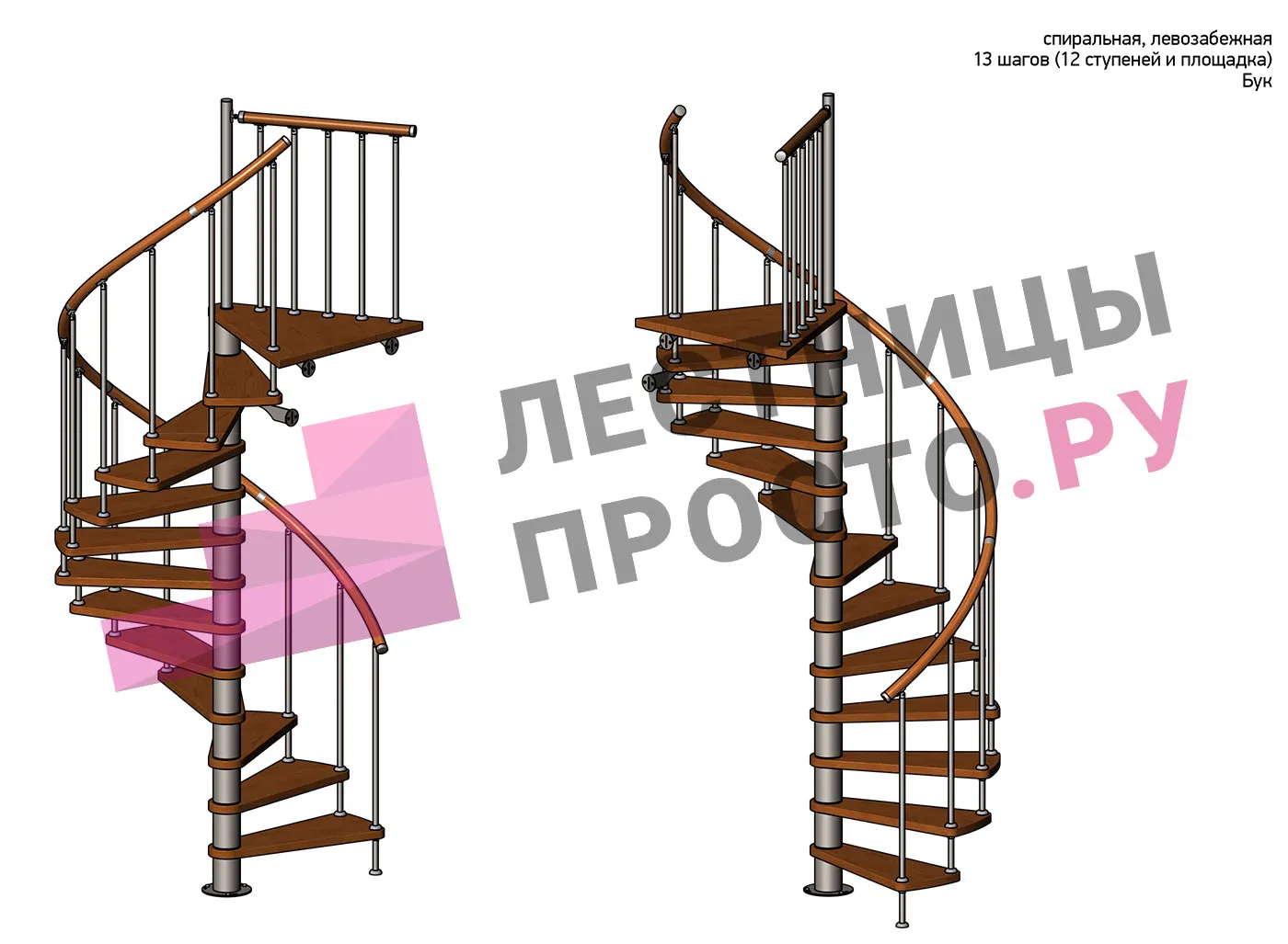 Левая, d=160см, 12 ступеней + площадка