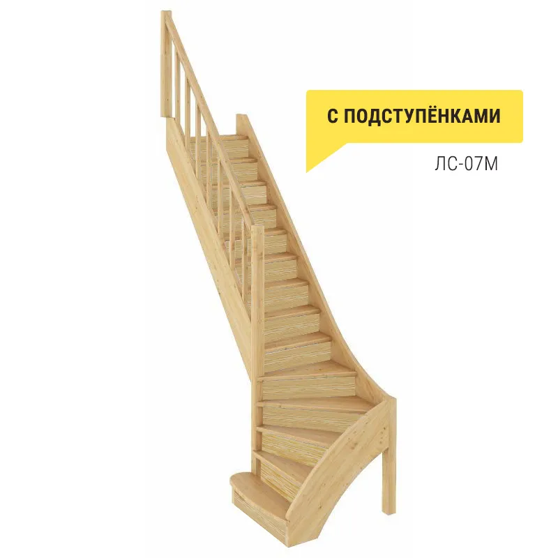 Лестница представлена в двух вариантах: с поворотом направо и с поворотом налево. Благодаря возможности регулировать высоту шага с помощью пластиковых вставок (входят в базовый комплект), высоту лестницы можно варьировать в пределах от 2860 до 3090 мм. Кроме того, купив дополнительную секцию для этой лестницы, можно поднять высоту до 3320 мм. Поручень изготовлен из массива дуба в тон ступеням. Ступени и поручень покрыты износостойким защитным лаком.