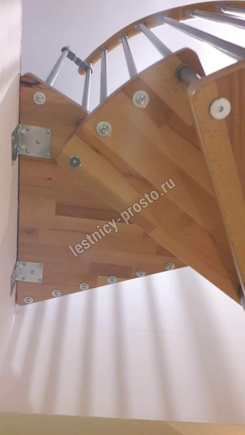 Лестница представлена в двух вариантах: с поворотом направо и с поворотом налево. Благодаря возможности регулировать высоту шага с помощью пластиковых вставок (входят в базовый комплект), высоту лестницы можно варьировать в пределах от 2860 до 3090 мм. Кроме того, купив дополнительную секцию для этой лестницы, можно поднять высоту до 3320 мм. Поручень изготовлен из массива бука в тон ступеням. Ступени и поручень покрыты износостойким защитным лаком.