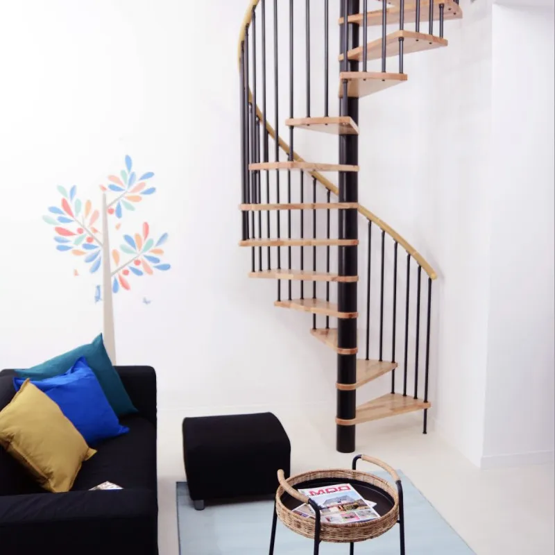 Винтовая лестница SPIRAL WOOD d160 см, чёрная, лакированный дуб