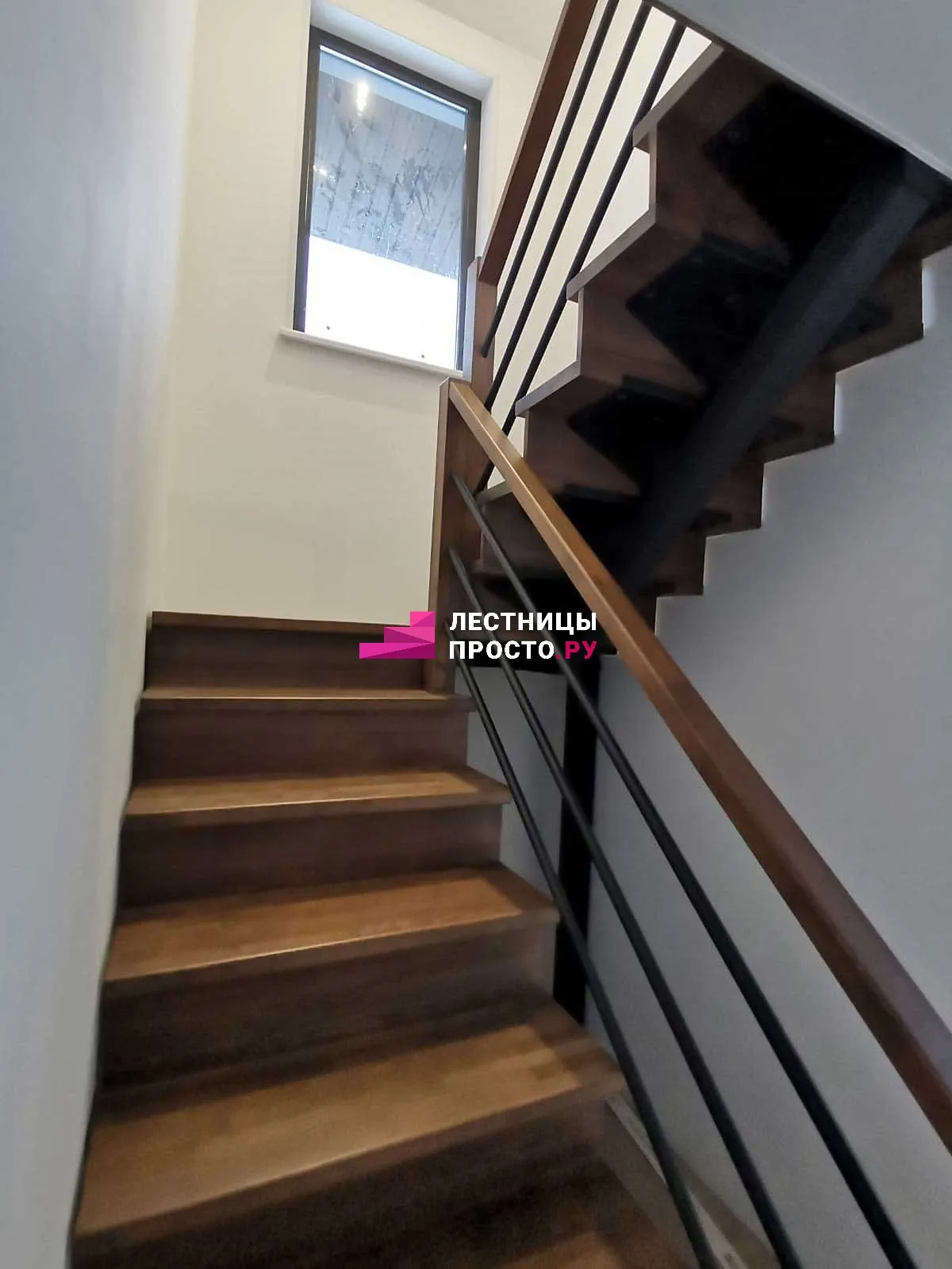 Металлическая лестница с дубовыми ступенями и ограждением LP-1-20