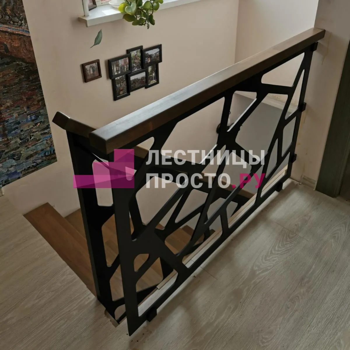 Современная лестница LP металлическая с ограждением тринити п-образная в частном доме