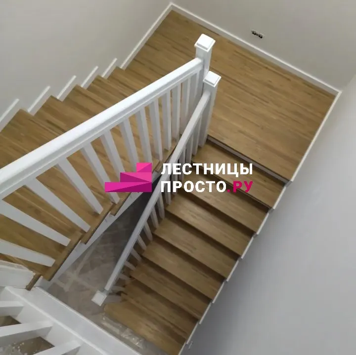 Подступенники, фальш-косоуры, сапожки (пристенной плинтус) декорированы МДФ.